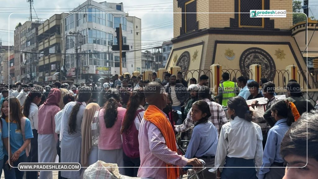 During the protest, students marched from the campus to Birgunj’s main Ghantaghar Chowk, where they blocked the road and burned tires, causing traffic disruption in both directions.